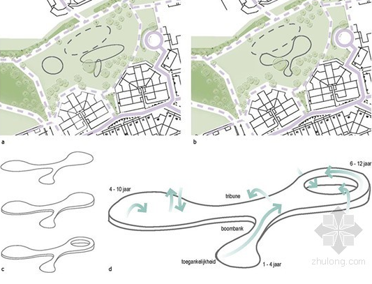 這是由Carve設(shè)計(jì)的海牙市Billie Holiday(比利假日)游樂(lè)場(chǎng)。位于海牙安靜的郊區(qū)Loosduinen。這座公園在翻新之前,幾乎被人遺忘。然而,隨著修復(fù)之后,這里變成了一個(gè)極具吸引力的公園。在翻新伊始,社區(qū)委員會(huì)舉辦了公眾參與的活動(dòng),充分了解了當(dāng)?shù)鼐用竦囊庠?。因此,翻新足球?chǎng)和自行車(chē)路徑首當(dāng)其沖。通過(guò)重新安置新設(shè)備,而達(dá)到周?chē)臻g重組的目的。